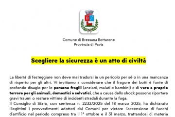 La libertà di festeggiare non deve mai tradursi in un pericolo per sé o in una mancanza di rispetto per gli altri. Vi invitiamo a considerare che il fragore dei botti è fonte di profondo disagio...
