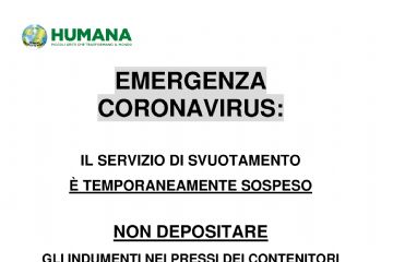 SI AVVISA LA CITTADINANZA CHE IL SERVIZIO DI SVUOTAMENTO DEI CASSONETTI DEGLI INDUMENTI È TEMPORANEAMENTE SOSPESO.