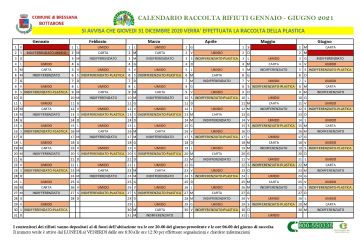 CALENDARIO RACCOLTA DIFFERENZIATA PERIODO GENNAIO - GIUGNO 2021