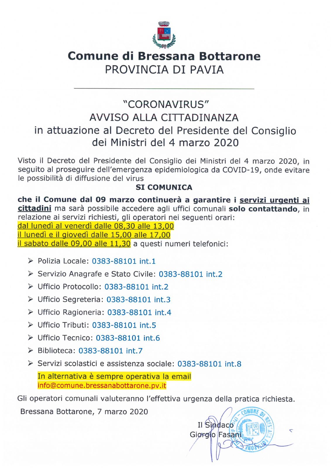 CORONAVIRUS AVVISO ALLA CITTADINANZA MODALITA' ACCESSO SPORTELLI