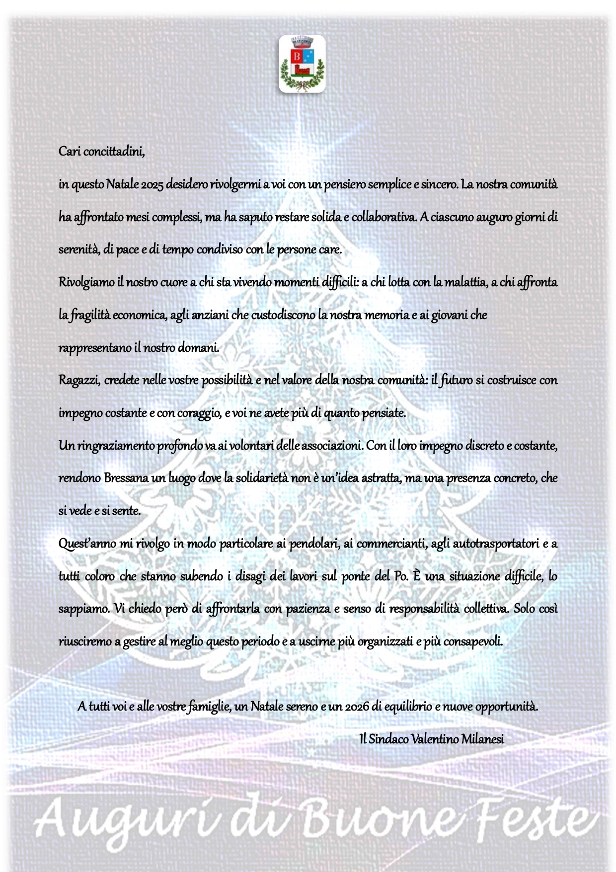 A tutti voi e alle vostre famiglie,  un Natale sereno e un 2026 di equilibrio e nuove opportunità