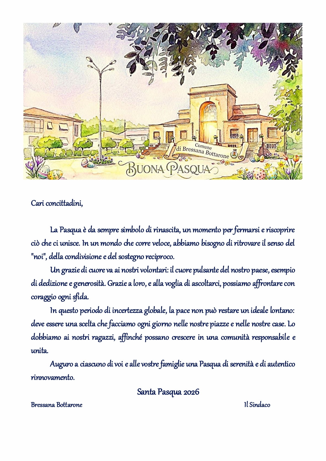 la Pasqua è da sempre simbolo di rinascita, un momento per fermarsi e riscoprire ciò che ci unisce. In un mondo che corre veloce, abbiamo bisogno di ritrovare il senso del "noi", della condivisione e del sostegno reciproco.