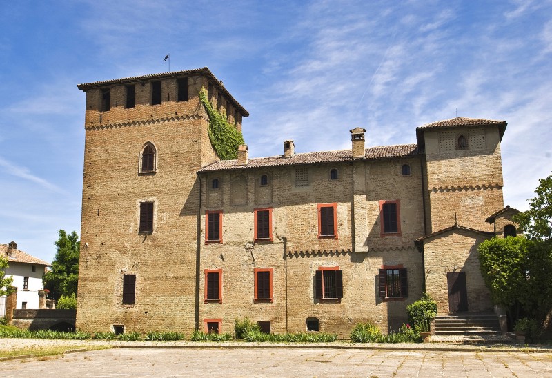 Configurazione strutturale: E' un edificio a pianta quadrangolare, interamente in mattoni a vista. Originariamente presentava quattro torri: una è tuttora esistente, completa di merlature, collocata sulla destra rispetto all'ingresso principale. Nell'angolo sud-est si trova una seconda di dimensioni minori. L'ingresso avviene da ovest: un portale ad arco immette in un cortile interno quadrato con facciate parzialmente intonacate. Il castello era dotato di ponte levatoio, ora sostituito da un ponticello fisso in muratura. Sulle murature perimetrali si notano i segni dei rimaneggiamenti avvenuti per lo più nel secolo XVIII come il sopralzo dell'ala nord. Le aperture sul lato ovest sono monofore con cornici modanate in cotto, mentre le finestre del fianco nord, settecentesche, presentano semplici bordature intonacate e dipinte. Un fossato corre intorno a tutto l'edificio, il cui basamento è scarpato, decorato con un fregio in cotto visibile in piccoli tratti. All'interno vari ambienti a volta e in legno decorato.