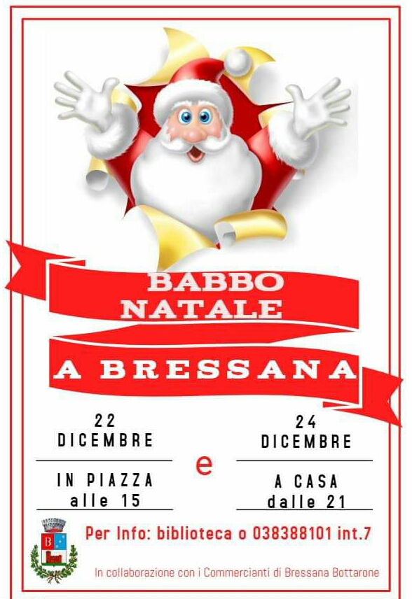 Babbo Natale arriva a Bressana! Il 22 dicembre in piazza Marconi alle ore 15, il 24 dicembre nelle case dei bambini dalle ore 21.