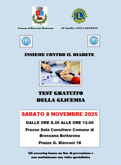 In sala Consigliare sul retro di Piazza Marconi l'8 novembre dalle 8:30 alle 12:00, sarà effettuato il test gratuito.
