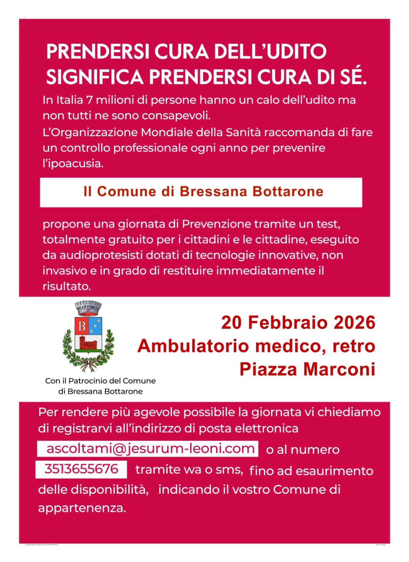 Il nostro Comune a tal fine propone una giornata dedicata alla prevenzione per il 20 febbraio 2026