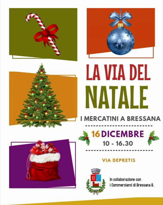 Domenica 16 dicembre, dalle 10 alle 16.30, si terrà il consueto mercatino di natale in via Depretis. Chi fosse interessato è pregato di compilare il modulo di adesione e farlo pervenire all'Ufficio protocollo del Comune di Bressana Bottarone entro il 10 dicembre.
