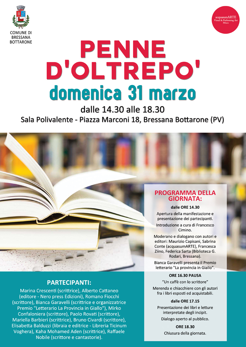 Ci saranno dialoghi con gli scrittori e gli editori dell'Oltrepo'. Vi aspettiamo!
