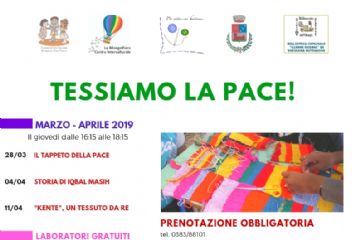 Laboratori manuali creativi e gratuiti sul tema della tessitura. Insieme si costruirà un telaio e tesseremo un tessuto della pace.